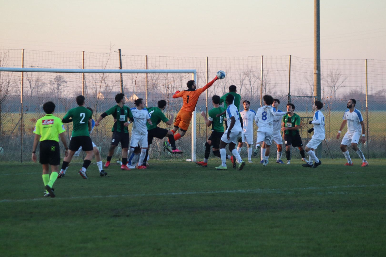 Fossoli. L’avvio è tutto di marca ospite: al 4’ la Sammartinese si rende subito pericolosa, poi al 12’ passa in vantaggio con Barbieri, che trova il gol con un tiro da fuori area che spiazza Chiossi. I blucelesti faticano a trovare ritmo e continuano a fare fatica: al 24’ arriva anche il raddoppio firmato Lecce, che porta gli ospiti sullo 0-2.